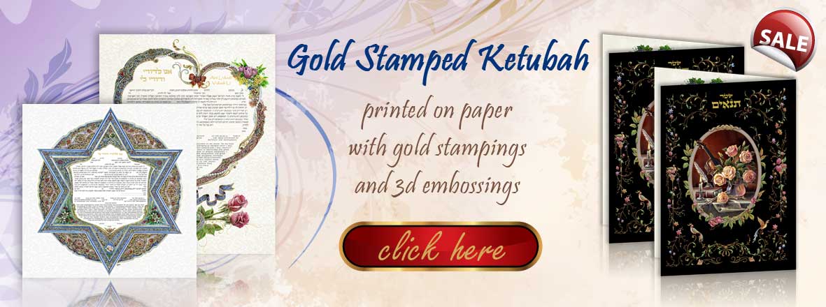 If you are looking for a cheap Ketubah, you’ve found the right address, we recommend you go for our digital prints. We give you the option to choose one of our beautiful designs, the one you like best, place your order, \and we will print the design especially for you as a digital print. You can also have your personal details already filled in on your design.