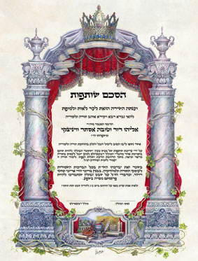The certificate is printed on soft-textured art paper or on genuine parchment (the same of which is used for writing Sifrei Torah, Tefillin and Mezuzot) of the highest quality and with a special texture which gives it an original and authentic appearance. The parchment color is light, a fact which accentuates the painting and color. This parchment is stronger than paper and will last for many years.