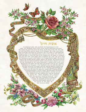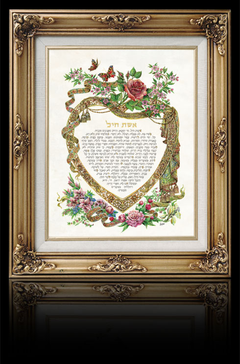 You  can upgrade your Eishet Chayil by adding handmade “extras” which give the artwork an  exquisite artistic value.