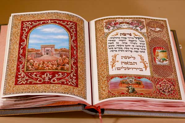 On this page we present you with a gallery of different Haggadot for Passover, painted in a variety of styles and on the highest standard existing on the Judaica market. These haggadot are drawn by the best artists of Art Chazin. Some of the originals displayed have already been sold to great Judaica collectors, we give you the opportunity to order these haggadot as a mix media limited edition on parchment.