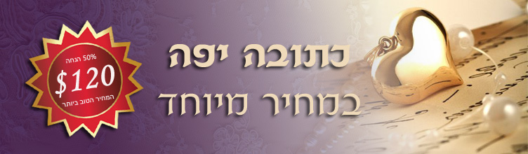 אנו נותנים לכם אפשרות רכישת כתובה ממגוון הכתובות המדהימות שלנו, במחירים זולים במיוחד, תוכלו לבחור את דוגמת הכתובה האהובה עליכם, תבצעו את ההזמנה, ואנו נדפיס את הדוגמא במיוחד עבורכם בהדפסה דיגיטלית, ניתן גם להזמין את מילוי הפרטים של החתן והכלה, בהזמנה אישית במיוחד עבורכם,